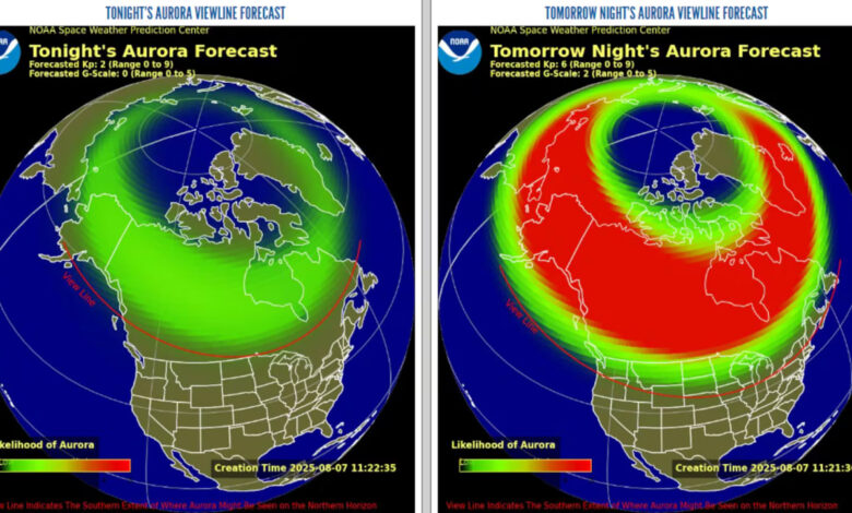 پیش‌بینی می‌شود شدت فعالیت ژئومغناطیسی در شب جمعه به سطح ۶ از ۹ برسد که در بازه‌ «متوسط» تا «فعال» برای شفق قطبی طبقه‌بندی می‌شود. انتظار می‌رود این فعالیت تا روز شنبه کاهش یافته و شفق قطبی به نواحی شمالی‌تر محدود شود.